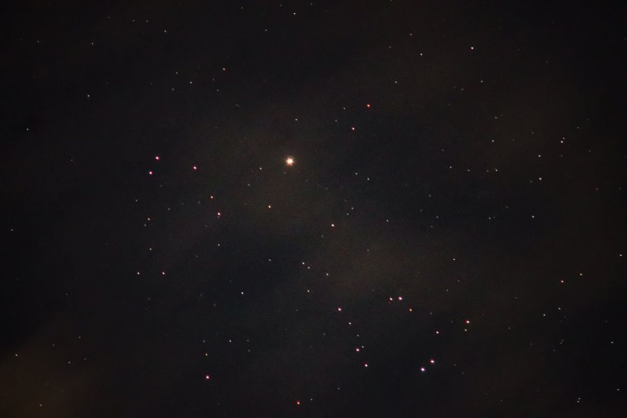 Cielo velato, singolo scatto con teleobiettivo da 300mm eseguito con Pentax KS2 con funzione Astrotracer attiva.