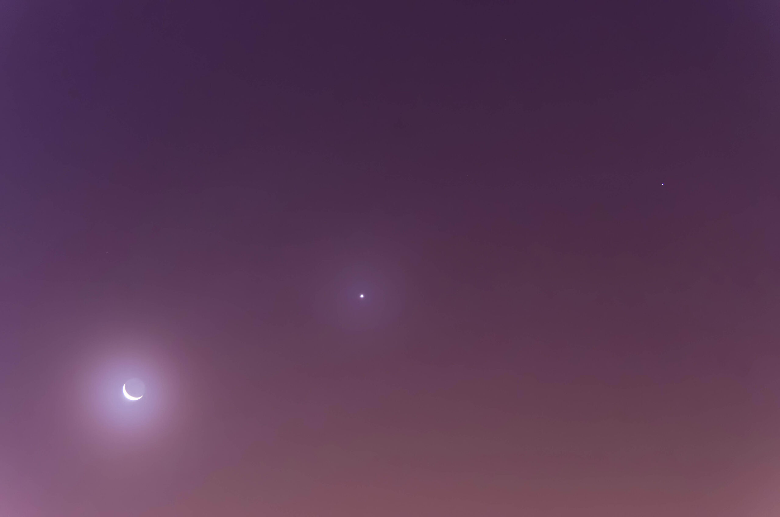 Ripresa effettuata con i tre astri immersi nella foschia alta di un umido mattino.