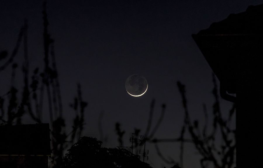 Sottile falce di Luna in fase 2,7% a 32 ore dalla Luna Nuova.