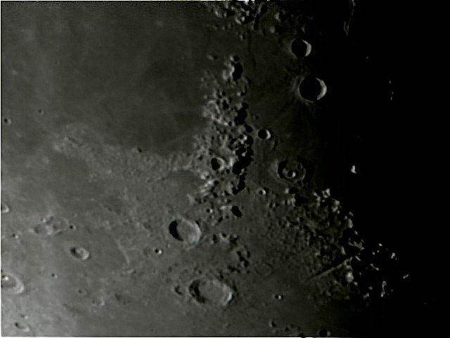 Montes Caucasus – !7 Novembre 2007 con la Luna quasi al primo quarto. Neximage Celestron al fuoco diretto di Nexstar 130 SLT – Barlow APO 2x Orion