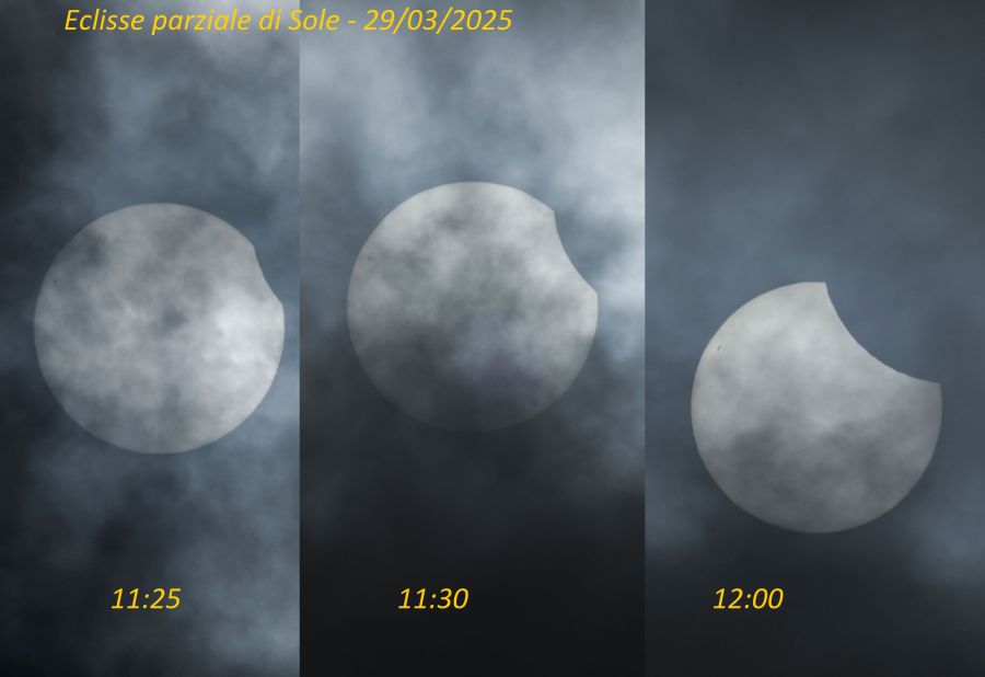 I tre scatti sono stati eseguiti rispettivamente alle 11.25, alle 11.30 e alle 12.00 sotto un cielo nuvoloso che di tanto in tanto consentiva la vista del Sole.