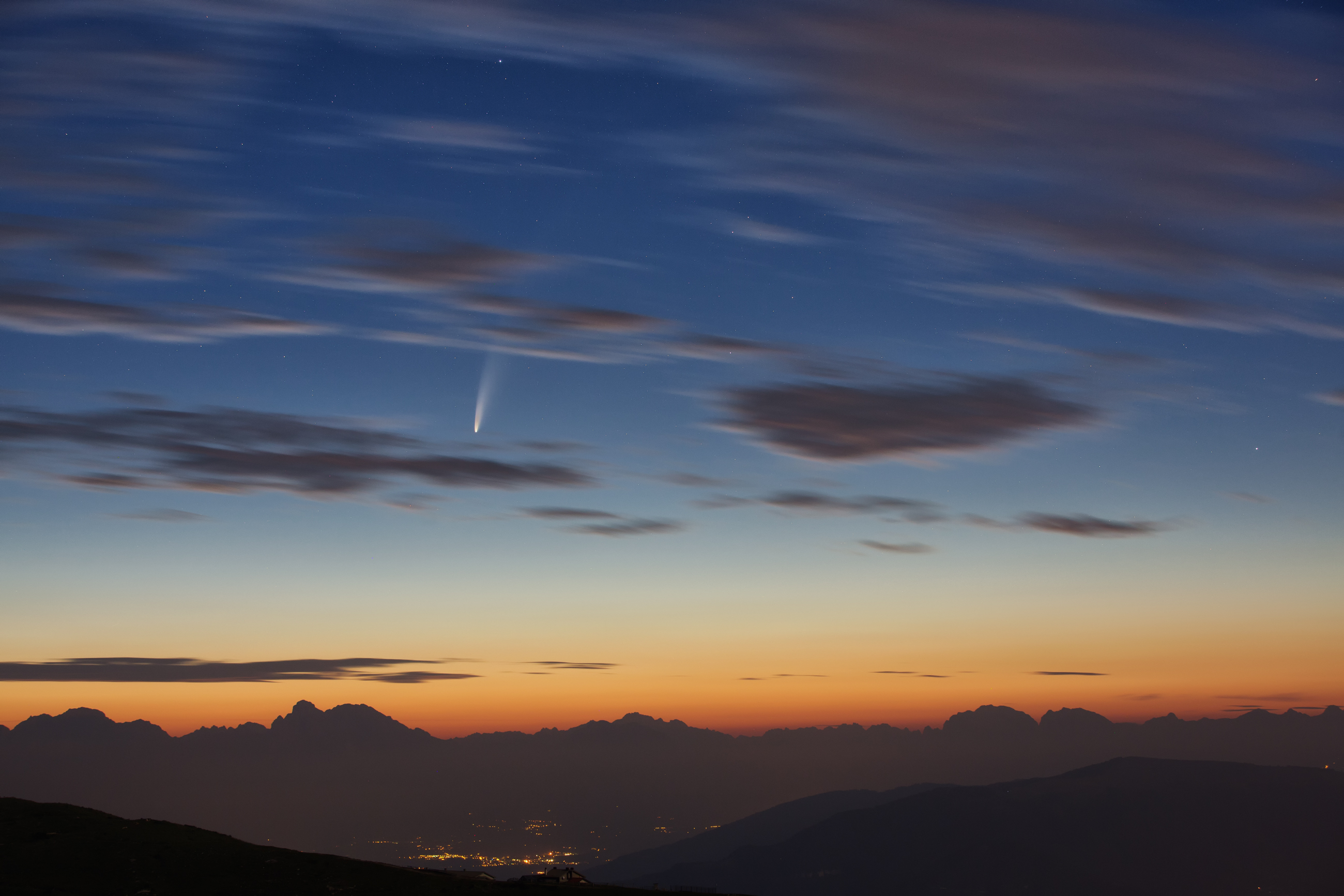 La cometa Neowise sullo skyline naturale delle Dolomiti bellunesi