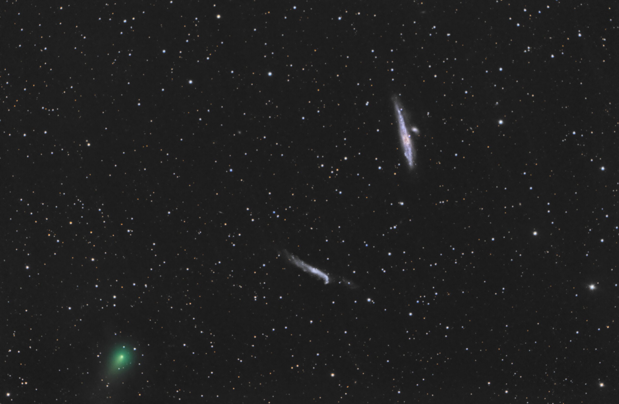 La Cometa Atlas saluta a Galassia Balena e la Galassia Bastone da Hockey
