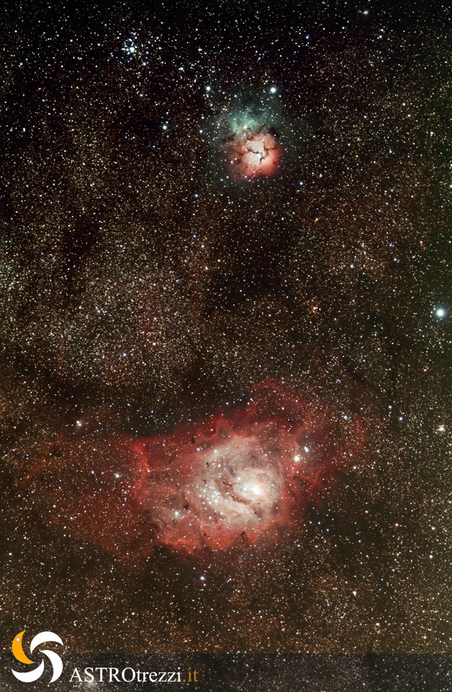 Telescopio di ripresa: Rifrattore ED Tecnosky carbon fiber 80 mm f/7 + riduttore/spianatore 0.8x + Canon EOS 500D modificata (e raffreddata ad aria).