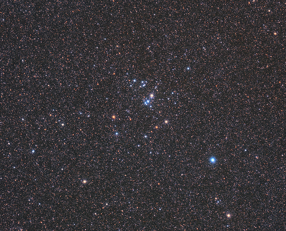 The cluster is centered on the star S Normae, which is also the brightest star of NGC 6087.