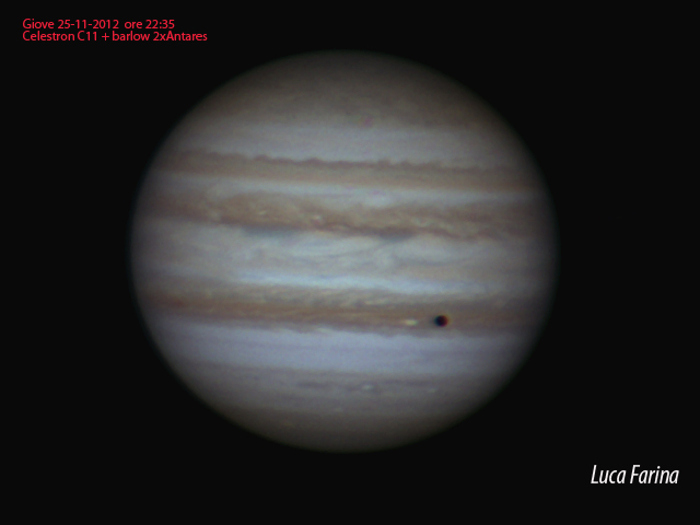 Ripresa di Giove con Dmk 21 a 15fps e barlow 2x antares. Elaborazione effettuata con Iris e photoshop cs3.
