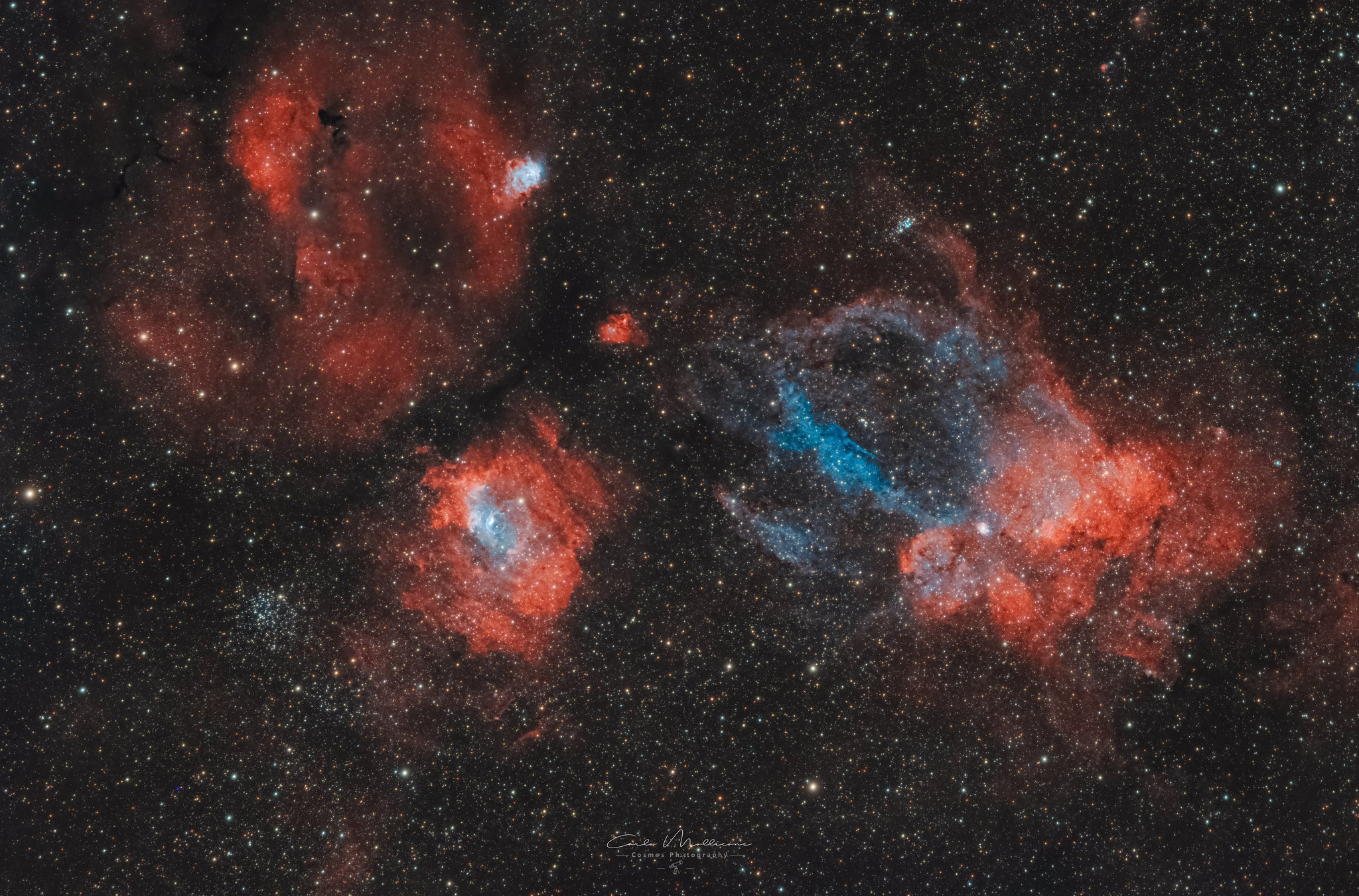 Al suo interno si trova un ammasso di stelle molto giovani, che rappresenta l’ultima generazione di un processo di formazione stellare che include la stessa associazione Cas OB2 e il vicino ammasso aperto NGC 7510.
