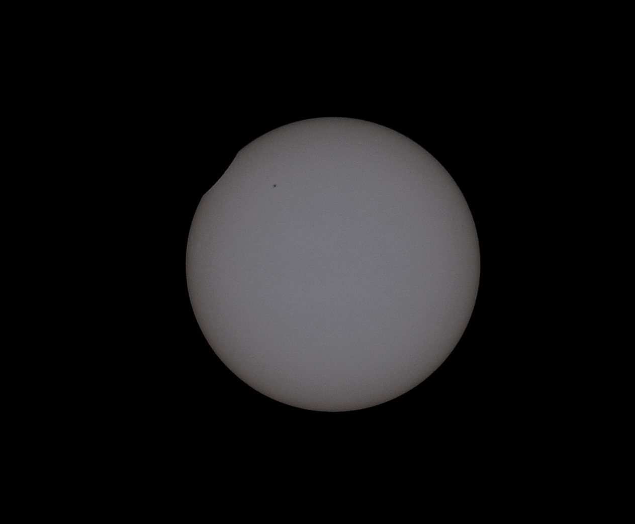 Ancora pochi secondi e l’eclissi di Sole avrà termine. La Luna occulta un ultimo pezzettino in alto a sinistra.