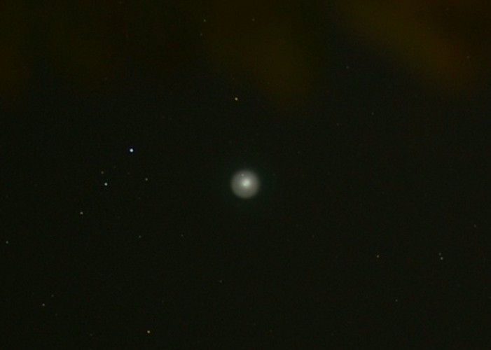 Cometa 17/P Holmes 28/10/07. Somma di 9 immagini da 4s a 800 ISO eseguite con un tele 200/4 montato sulla reflex PENTAX K100D.