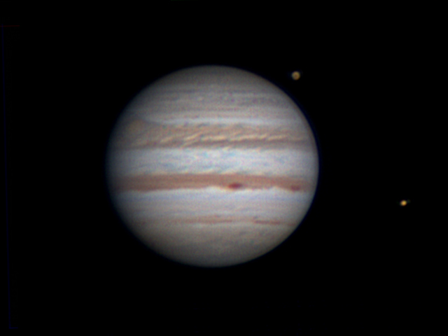 Tricromia RGB con camera MAGZERO e telescopio C8 alla focale di 7600mm. Sono visibili anche i satelliti Io e Ganimede, su quest’ultimo sono presenti dei dettagli superficiali.
