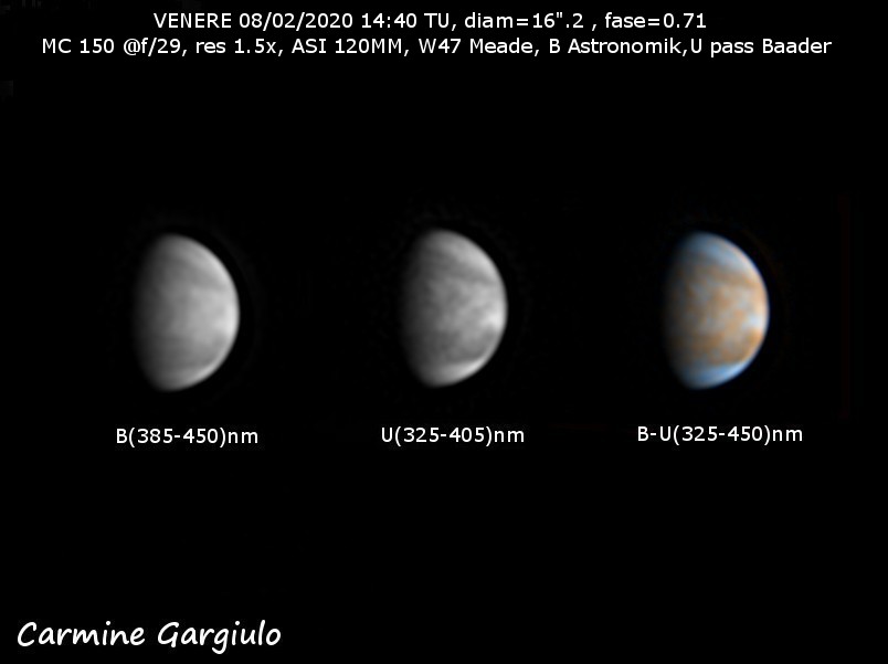 Per le riprese ho usato la tecnica della tricromia sintetica dove il canale rosso è stato sostituito da un’immagine a banda stretta del canale blu (filtri W47+B) mentre il canale B è stato sostituito con un’immagine nell’ultravioletto (filtro fotometrico Baader U)