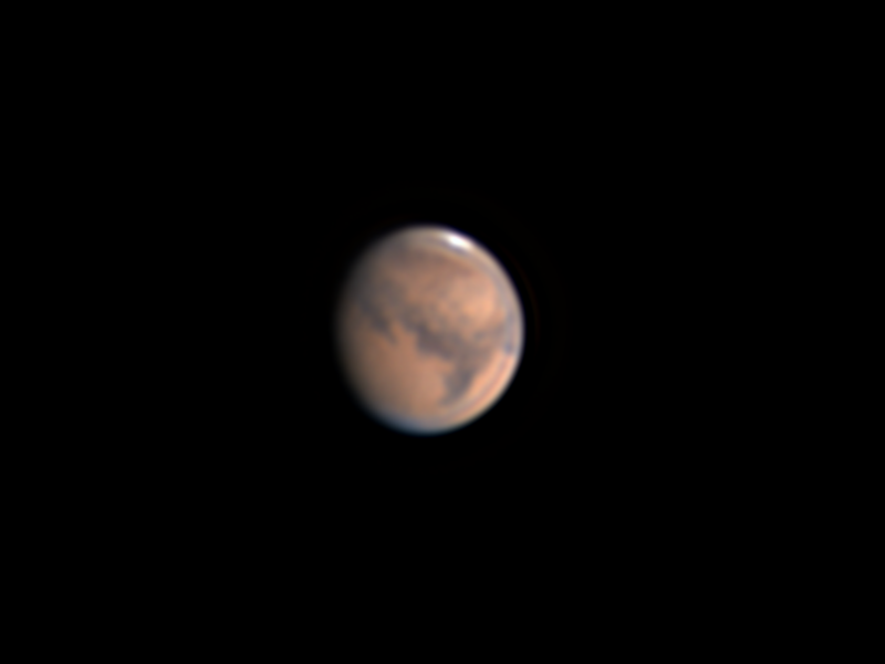 Ripresa di Marte con la Grande Sirte tramite un Mak 150 e una webcam a colori ASI 224MC