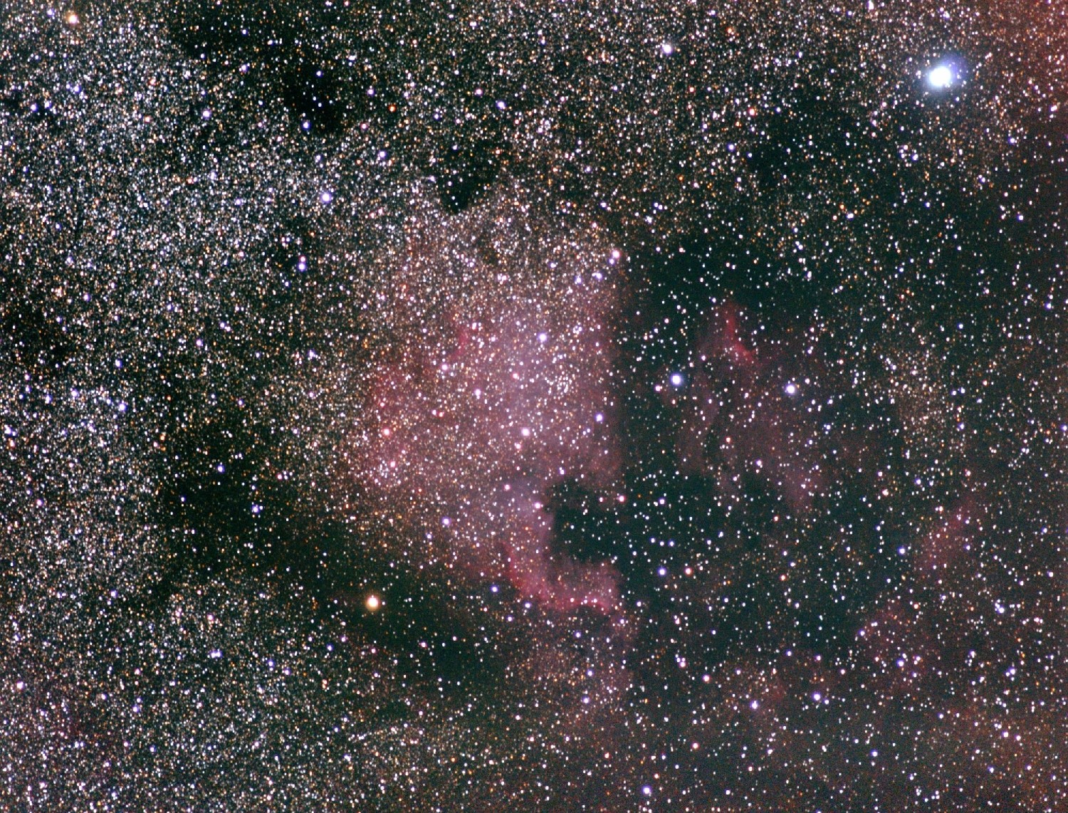 Nebulosa Nord America ripresa in luogo ancora incontaminato dall’inquinamento luminoso sulla costiera amalfitana. Ho utlizzato la fotocamera Pentax K5 + 200mm f/4 montati sull’astroinseguitore Vixen Polarie ed effettuato 104 pose da 20s a 12800 ISO.