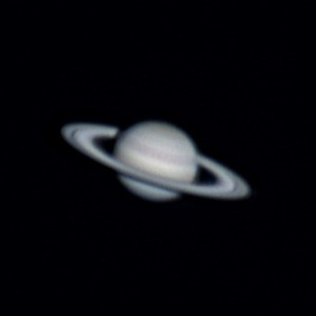 Saturno 1 Novembre 2006. Focale equivalente di 6000 mm (t=1/10 s), elaborazione con Iris (L(R)+RGB) di un filmato AVI di 1800 frames.Il filmato è stato ripreso con una webcam Philips Vesta + filtro IR cut + Barlow 3X COMA apocromatica collegata ad un C8 XLT.