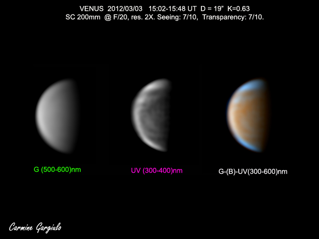 Tricromia sintetica di Venere ottenuta con i canali G e UV.