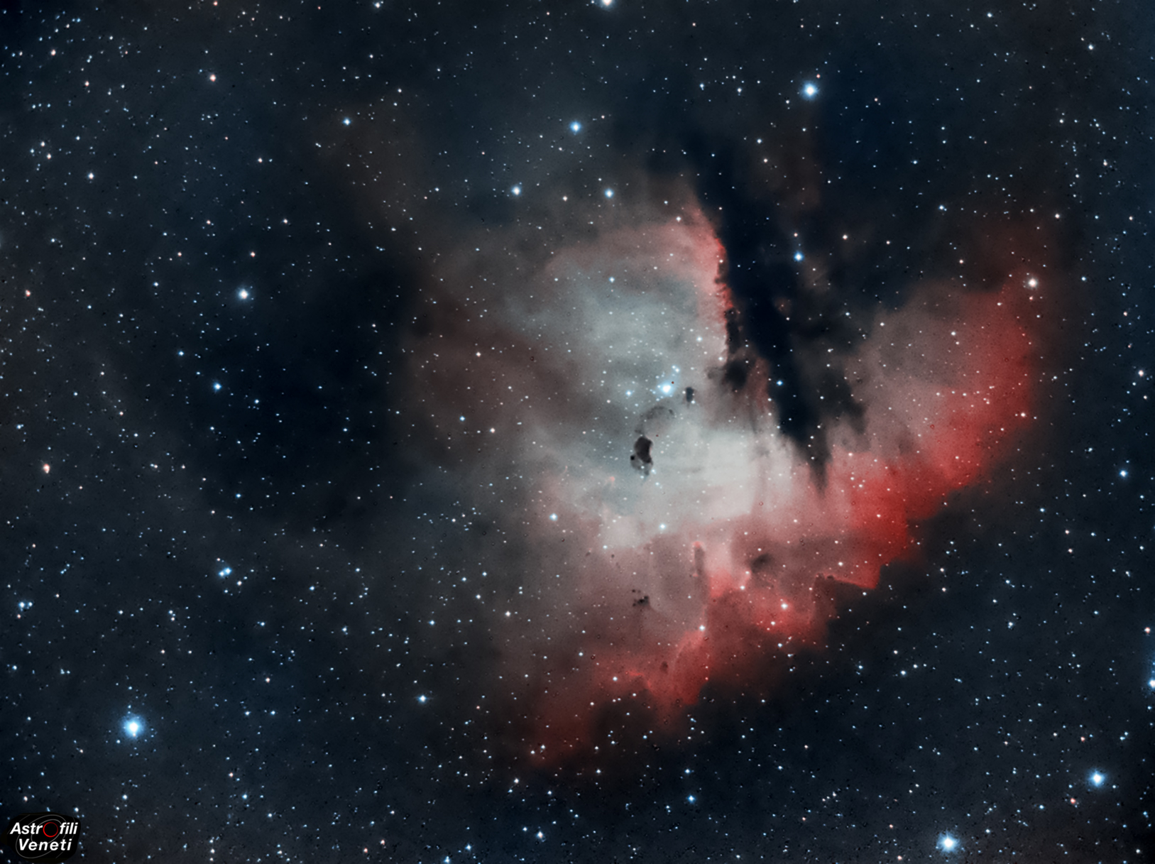 NGC 281 è una nebulosa a emissione visibile nella costellazione di Cassiopea; circonda l’ammasso aperto IC 1590. Talvolta è chiamata Nebulosa Pacman.