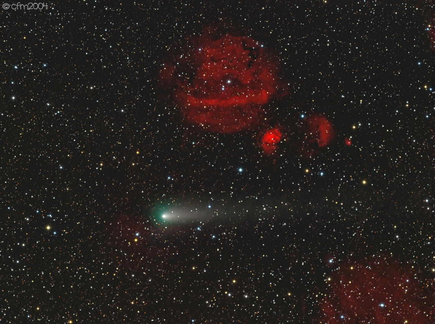 Questa volta la cometa è stata ripresa in prossimità di un gruppo di nebulose del catalogo SH (SH2-232,235,233 e 231)