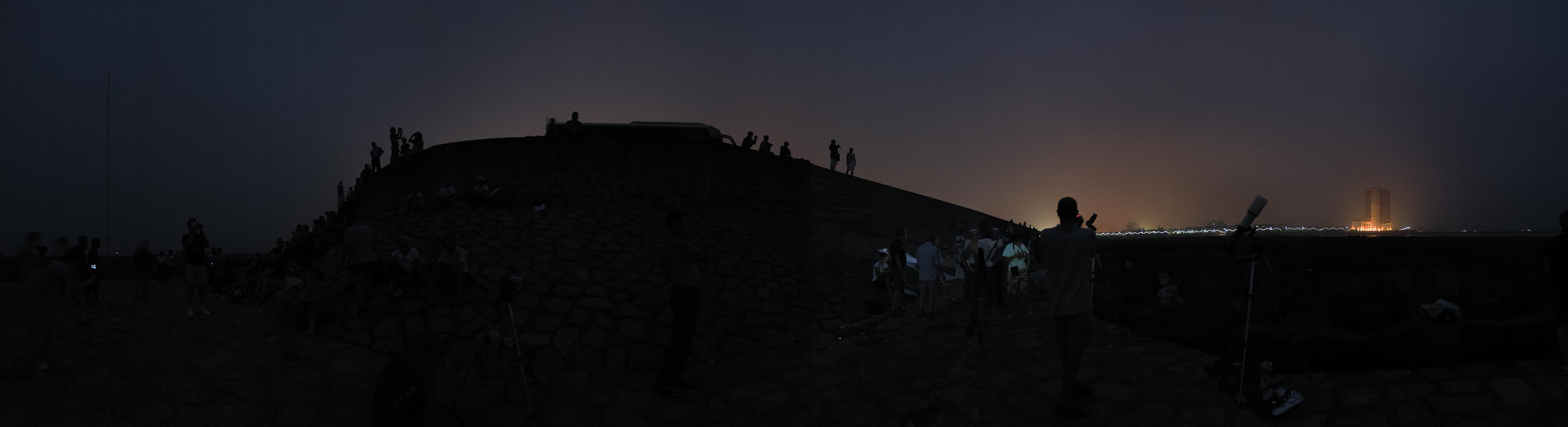 Eclisse totale del 29/07/2009. Panoramica durante la totalità: il cielo quasi nero è causato soprattutto dalla forte copertura nuvolosa, che ha impedito di osservare la corona solare.
