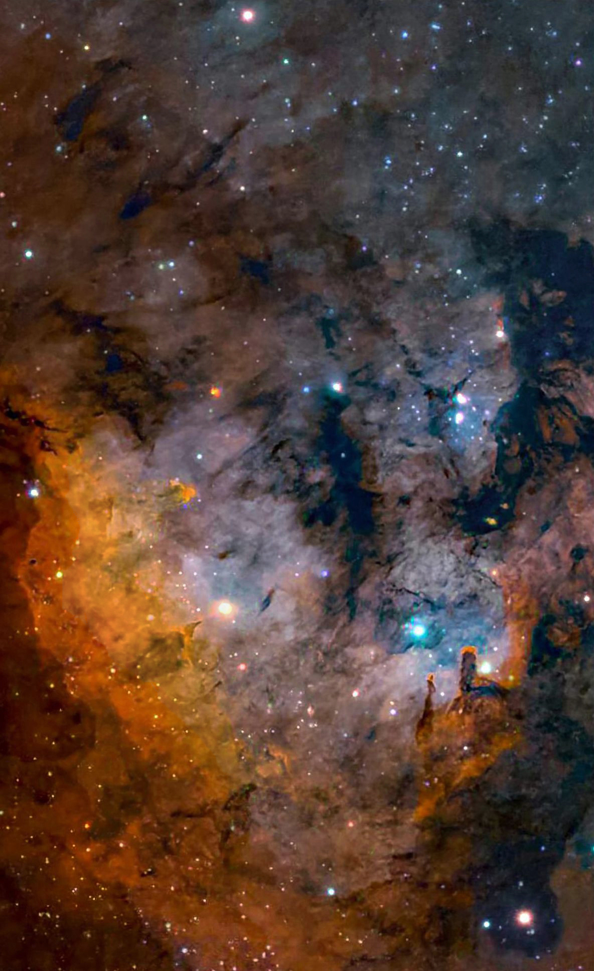 AMMASSO STELLARE APERTO BERKELEY 59 L’Ammasso Aperto Berkeley 59 è un gruppo di stelle nate insieme da una nebulosa molecolare gigante , e ancora unite dalla reciproca attrazione gravitazionale. Questo ammasso contiene nuove stelle blu con classi spettrali comprese tra la 07 e la B3 fra le quali spicca BD + 66 1673 , una delle più calde del gruppo. Si tratta di una binaria a eclissi in cui la stella primaria , di classe 05V ha una temperatura superficiale pari a 45000K e una luminosità di 100.000 Soli. La sua sigla di stella variabile è V747 Cephei. Al centro dell’immagine notiamo HD225216 , una stella gigante arancione-rossa situata approssimativamente al centro della nebulosa NGC7822 , e la sua luce illumina le formazioni gassose giallo-arancio che si possono ammirare sulla sinistra della foto. Alla destra di HD225216 troviamo HD224992 e in basso a destra HD224826. L’età stimata è di circa cinque o sei milioni di anni: