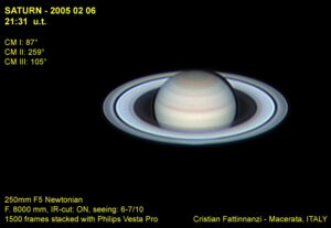 Filmato da 120 secondi a 15 fps, tempo del singolo fotogramma 1/25 di secondo. Proiezione di oculare per allungare la focale.
