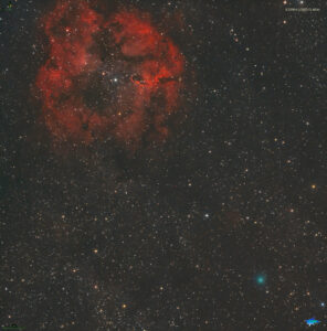Slalomando tra le nuvole sono riuscita a fotografare questa bella cometa. Con mia sorpresa, sommando 42 scatti da 3.2" è venuta fuori anche l’anticoda e si nota anche M5 all’interno della coda.