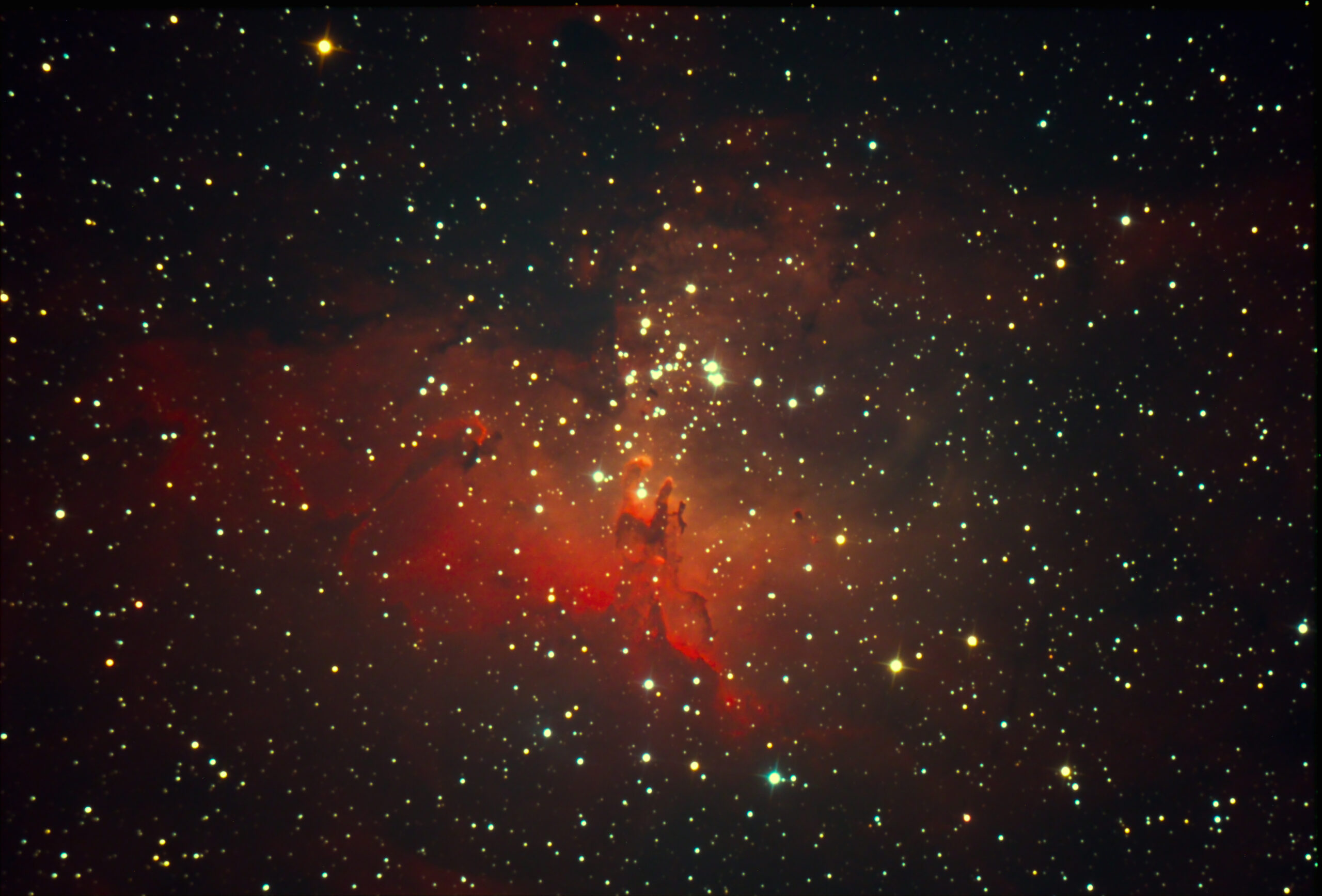 La nebulosa Aquila con al centro i famosi "Pilastri della Creazione"