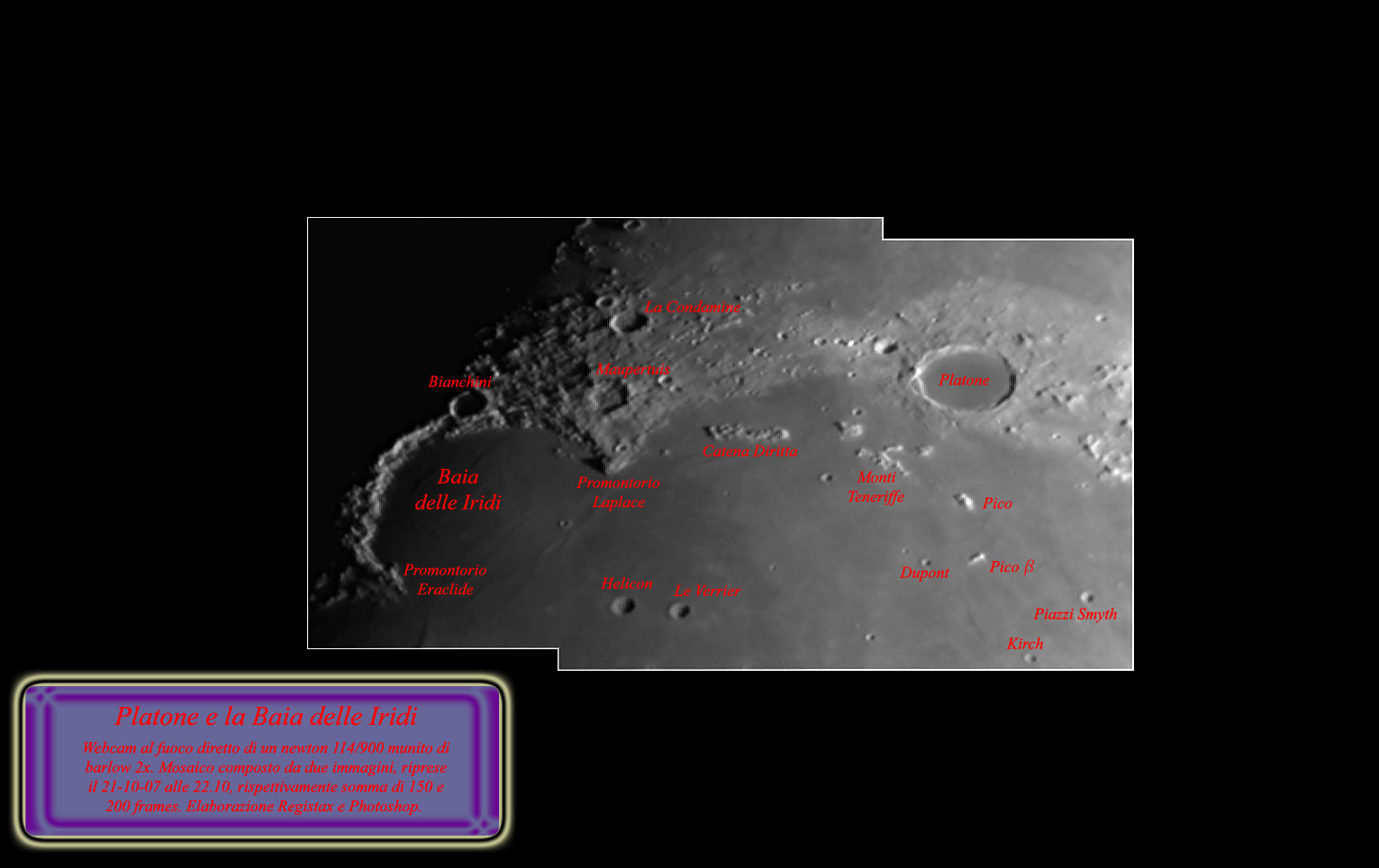 Mosaico di 2 immagini riprese con la tecnica web cam. Ripresa effettuata con un newton 114/900 con barlow 2x con web cam Trust. Elaborazione tramite Registax4 e Photoshop