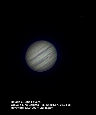 Il primo Giove visto e ripreso dalla piccola Sofia ( 10 anni ). Rifrattore 120/1000 barlow 3x e quickcam pro 3000.