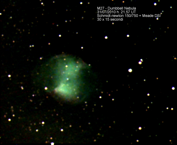 Ripresa di M27 dal centro città. M27 con newton 150/750 e Meade DSI 1 – www.dexka.it