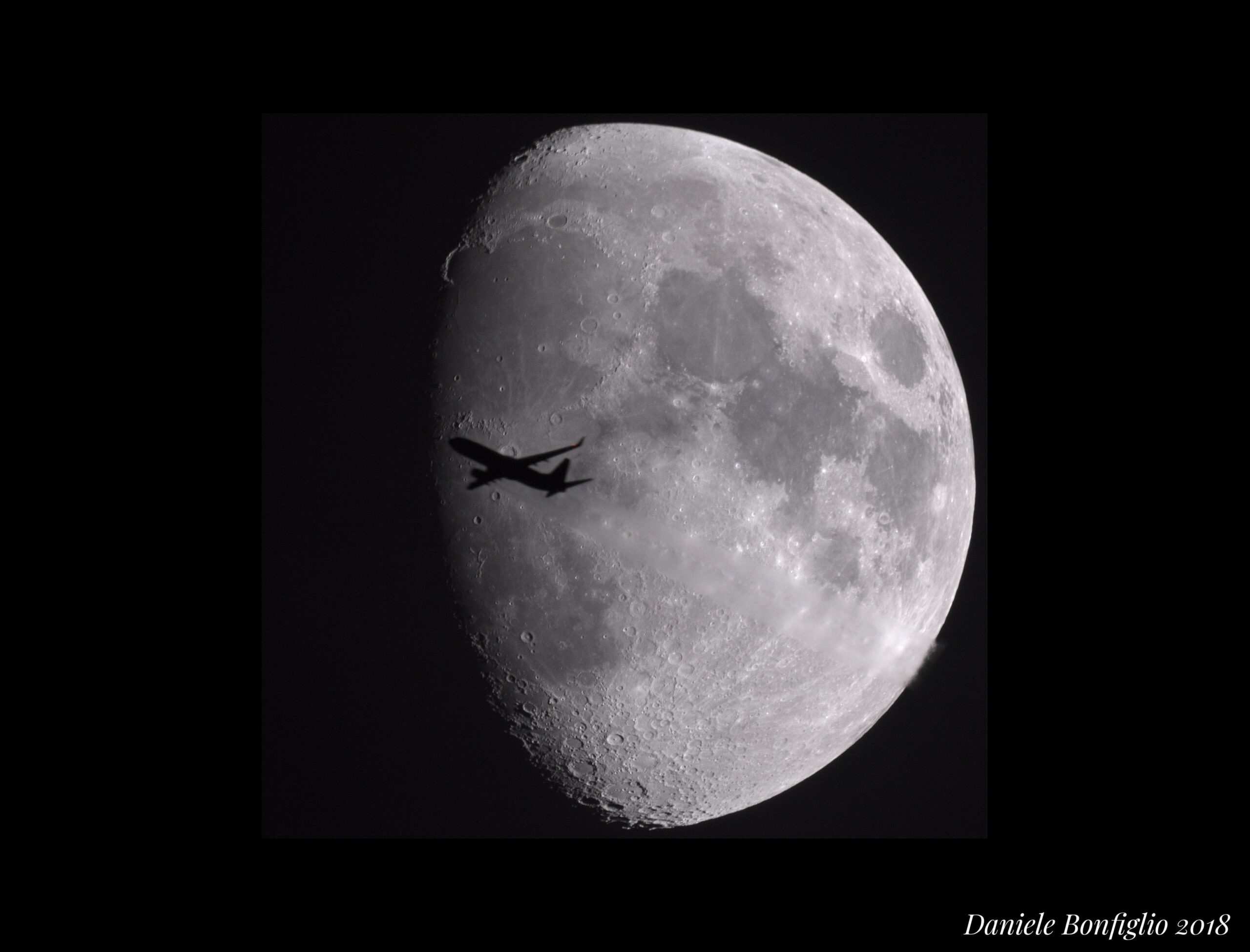 Stavo facendo una raffica di foto alla Luna e mi è capitato per puro caso di riprendere questo "transito" di un aereo!