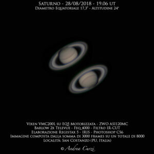 Somma di 16 pose da 360" a 800ISO, 3 Dark, 25 Flat e 25 DarkFlat. Canon EOS 400D Modificata su GSO RC8"; Autoguida con QHY5II su Skywatcher 70/500. Somma ed Elaborazione con IRIS e Photoshop CS2. Località: Castelletta di Fabriano (AN)