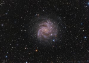 M74 conosciuta anche come la Galassia Fantasma è una galassia a spirale visibile nella costellazione dei Pesci, nei suoi bracci sono presenti molte stelle giovani ancora in formazione.