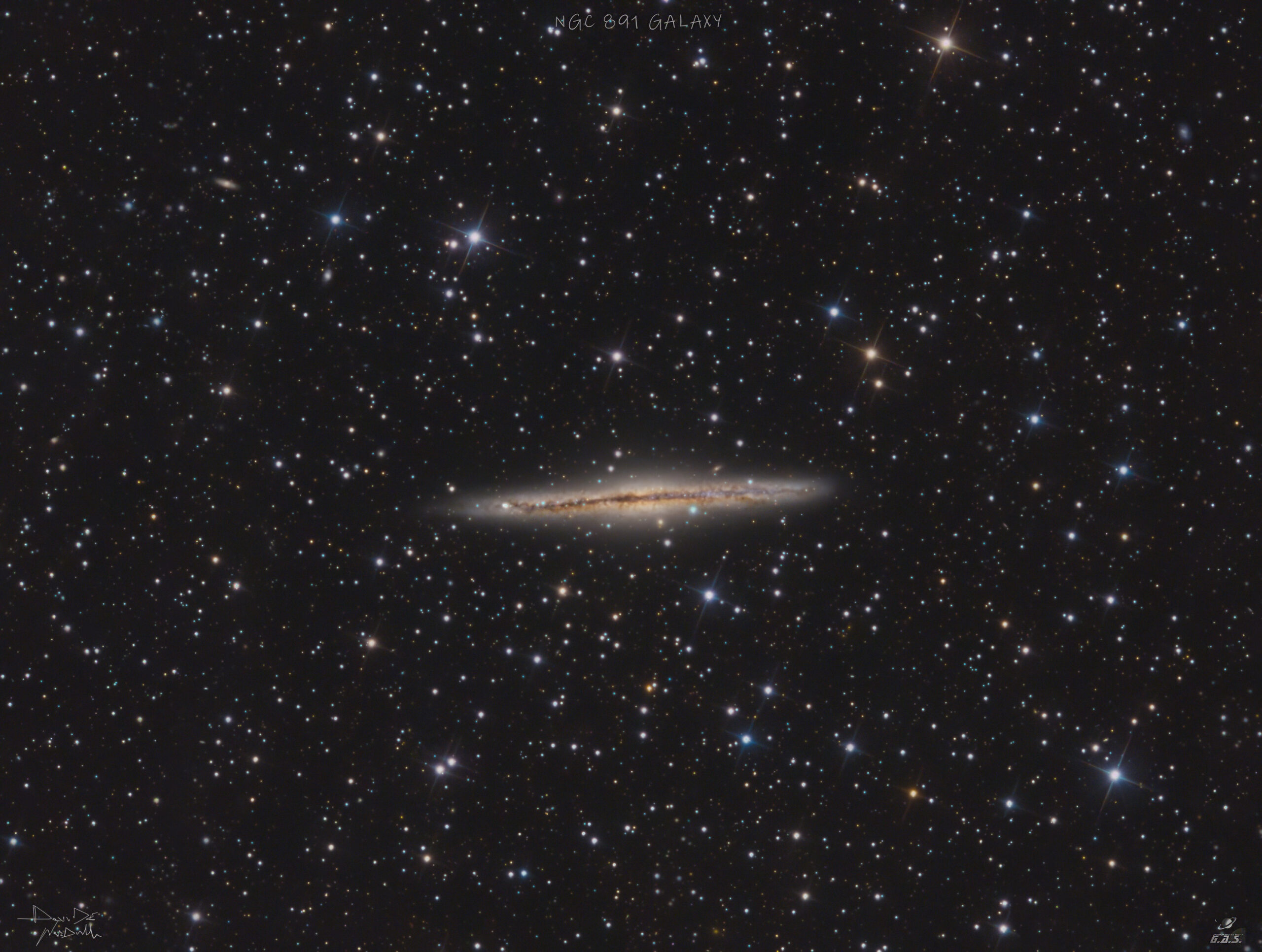 La grande galassia a spirale NGC 891 si estende per circa 100.000 anni luce ed è visibile dalla nostra prospettiva quasi perfettamente di taglio. Infatti NGC 891, a circa 30 milioni di anni luce di distanza nella costellazione di Andromeda, ha un aspetto molto simile alla nostra Via Lattea.
