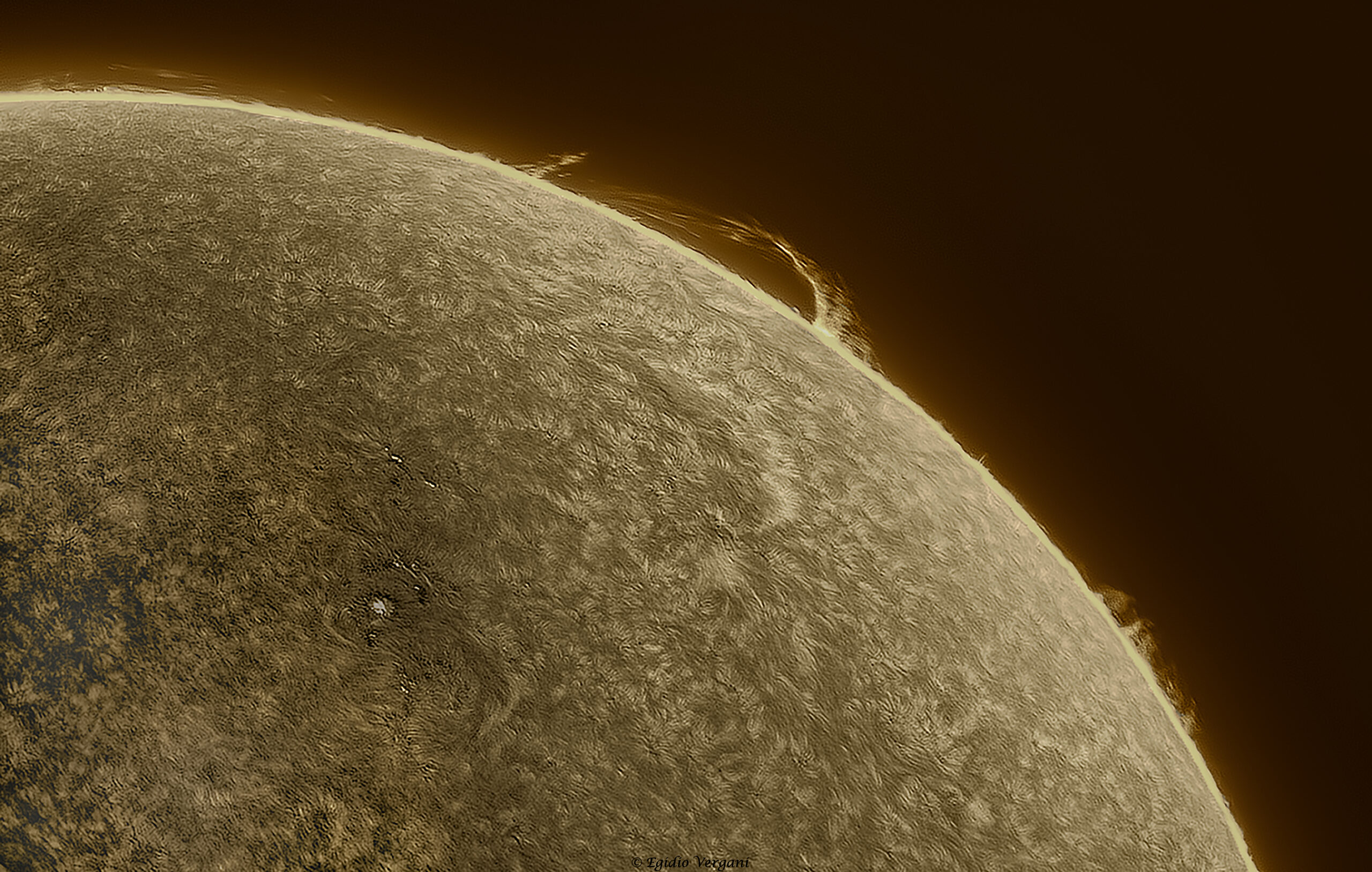 Un brillamento ha formato un arco solare, in pochi minuti si è formato e dopo circa 1 ora iniziava a tornare indietro, è stato fantastico seguire l’evoluzione con telescopio Tecnosky 80 Edt, camera Asi174mm, filtro Daystar Quark H-Alpha Chromosphere, montatura Ioptron Gem 28, filtro Uv/Ir cut Svbony, filtro Player One ERF 1.25″
