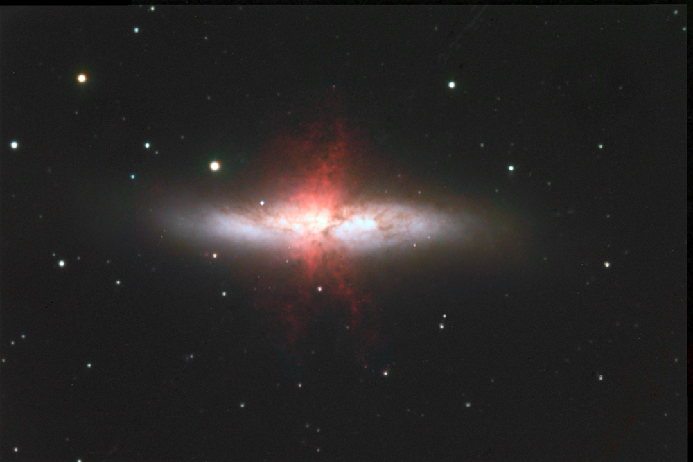 M82 ripresa in Ha per evidenziare i getti di gas ionizzato