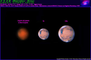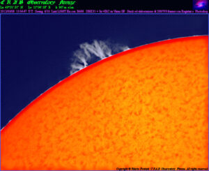Londa ( Fi ) La 43°:51′:31″ N Lo 11°:34′:18″ E h 347m s.l.m. 2025/08/26 10:55:43 U.T. Zona attiva AR 4197 Telescopio Lunt LS60T H_α con B600 modificato “ Ø 80mm F 600mm ” e camera ASI 224MC + IR_c su Avalon Linear fast reverse Ripresa da 120 “ a 33fps gain 0 Shutter 4.702ms Acquisizione con FireCapture Durante questa sessione ho sperimentato una tecnica di dithering manuale, ideata personalmente, con l’obiettivo di ridurre gli anelli di Newton visibili in H_α. Il movimento leggero e controllato del disco solare durante l’acquisizione ha permesso l’eliminazione dei pattern di interferenza. Elaborazione con AutoStakkert, AstroSurface e Photoshop