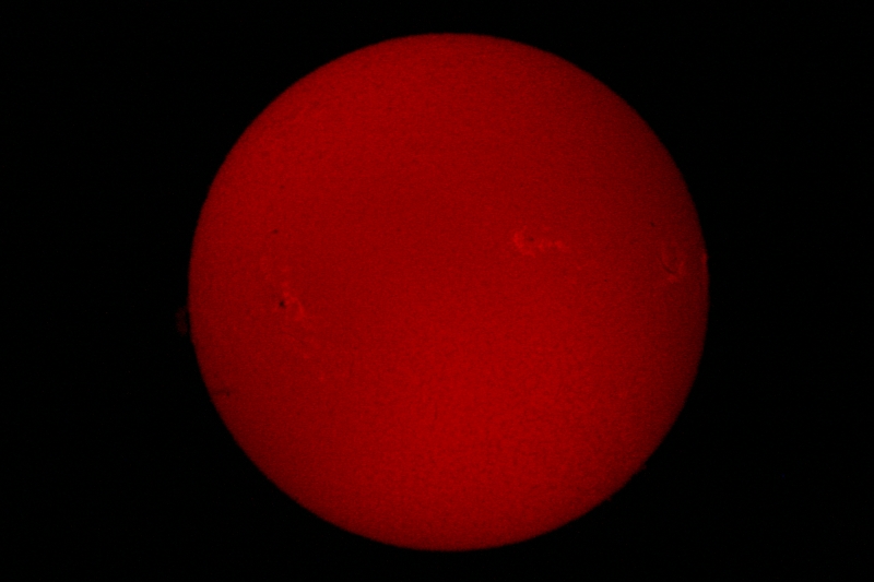 Propongo una immagine del Sole effettuata il 28.12.2011 con telescopio solare Coronado PST da 40 mm, Canon 350D in proiezione di oculare (15 mm), sostegno autocostruito, esposizione 1/250 secondi, apertura obiettivo 5,6, ISO 800, unico scatto ritoccato leggermente con sw IRIS.