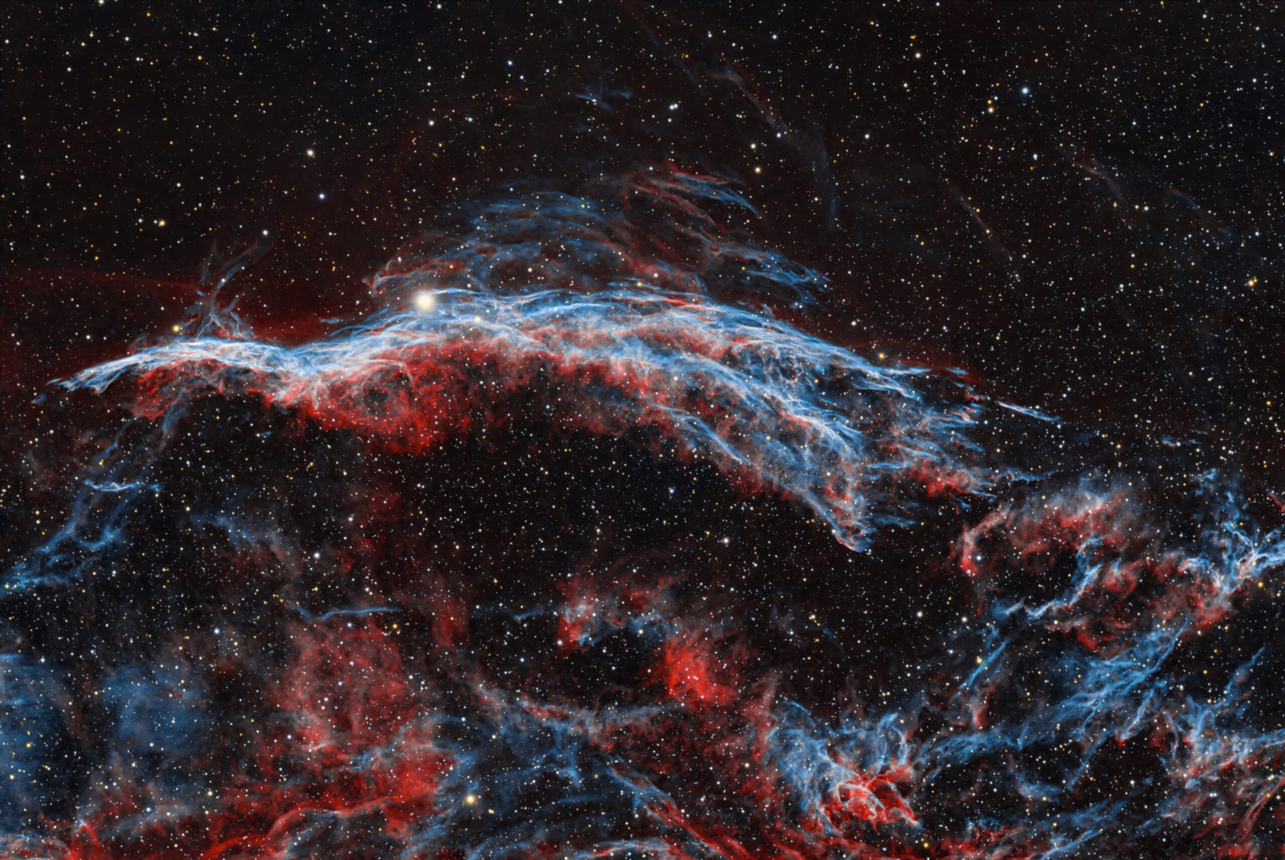 NGC 6960 è una regione di gas ionizzato che fa parte di un resto di supernova presente nella costellazione del Cigno, il Cygnus Loop.