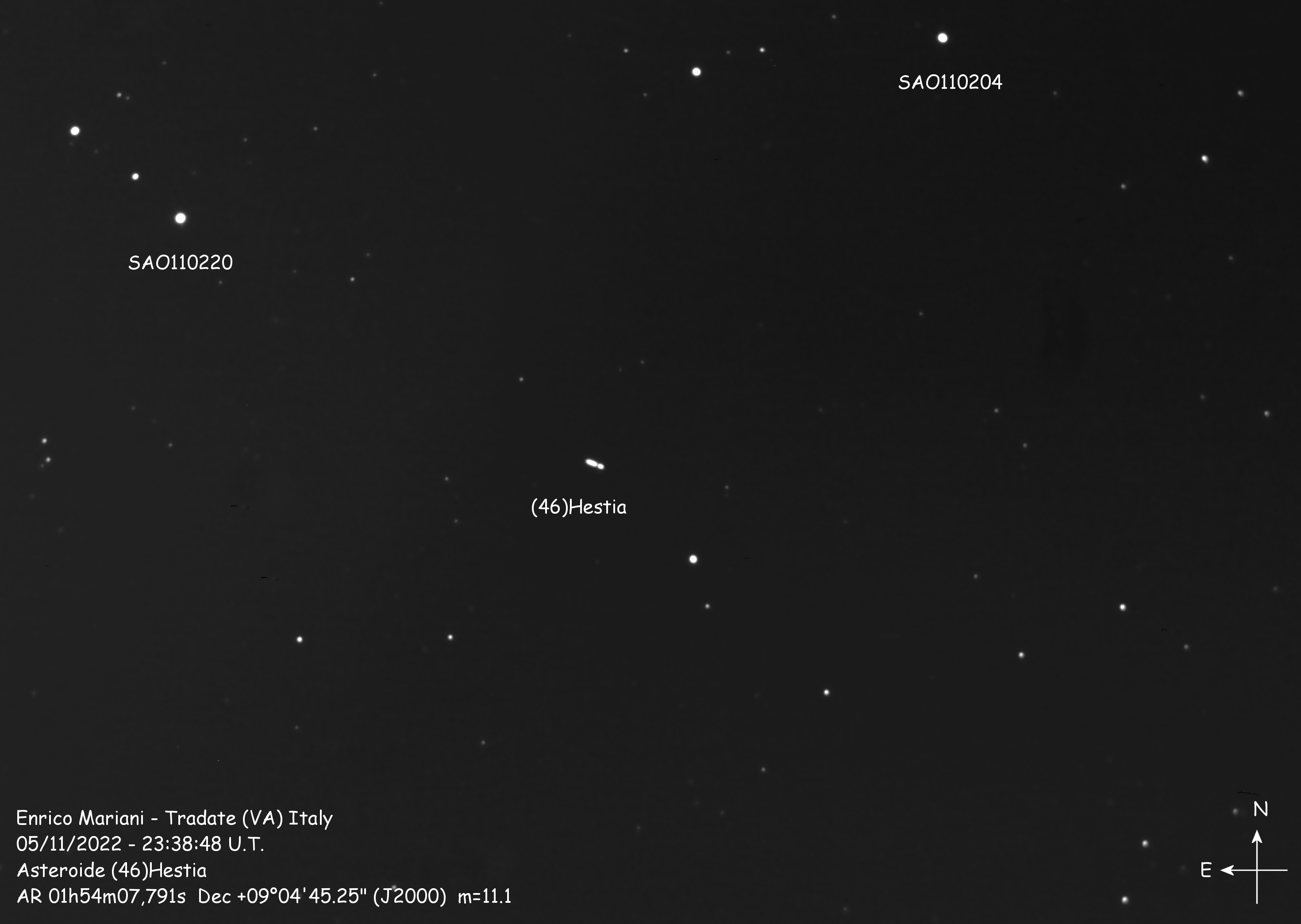 Ripresa dell’asteroide (46)Hestia nell’ambito del programma di osservazione dei primi 100 asteroidi.