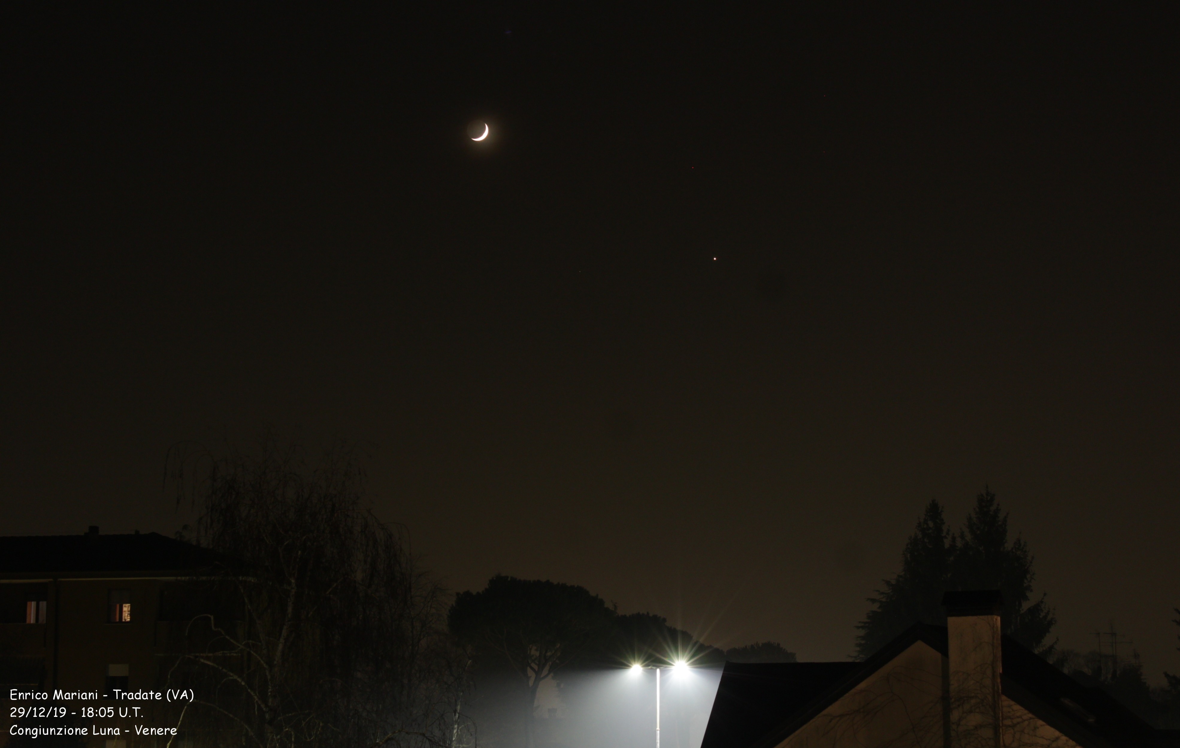 Congiunzione della Luna con visibile la luce cinerea e Venere