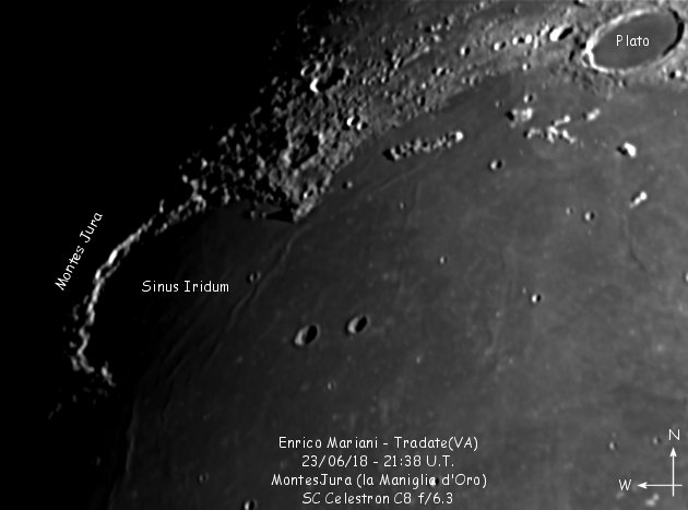 Montes Jura illuminandoli, mentre il Sinus Iridum ai