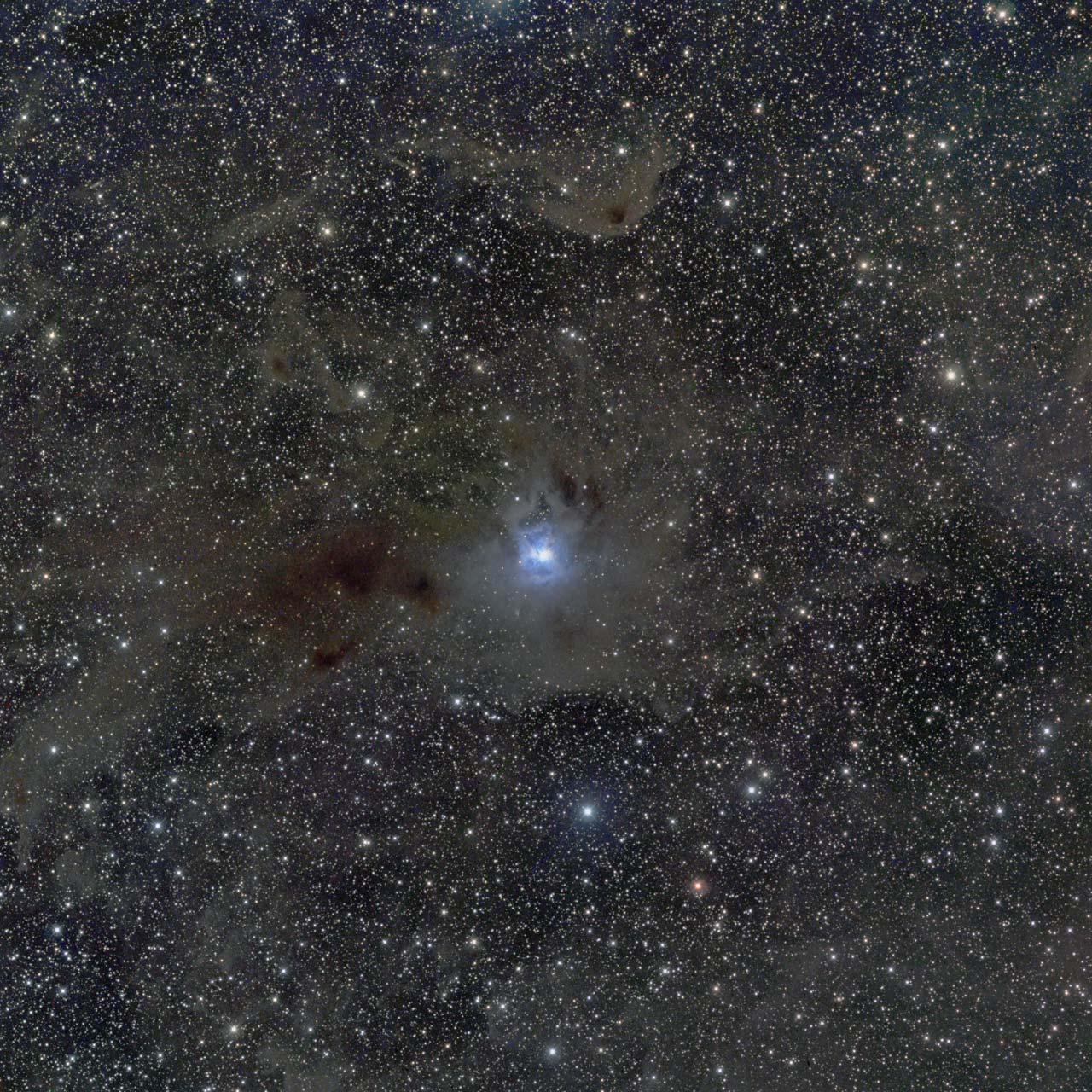 La Nebulosa Iris immersa nelle nubi di polveri interstellari.