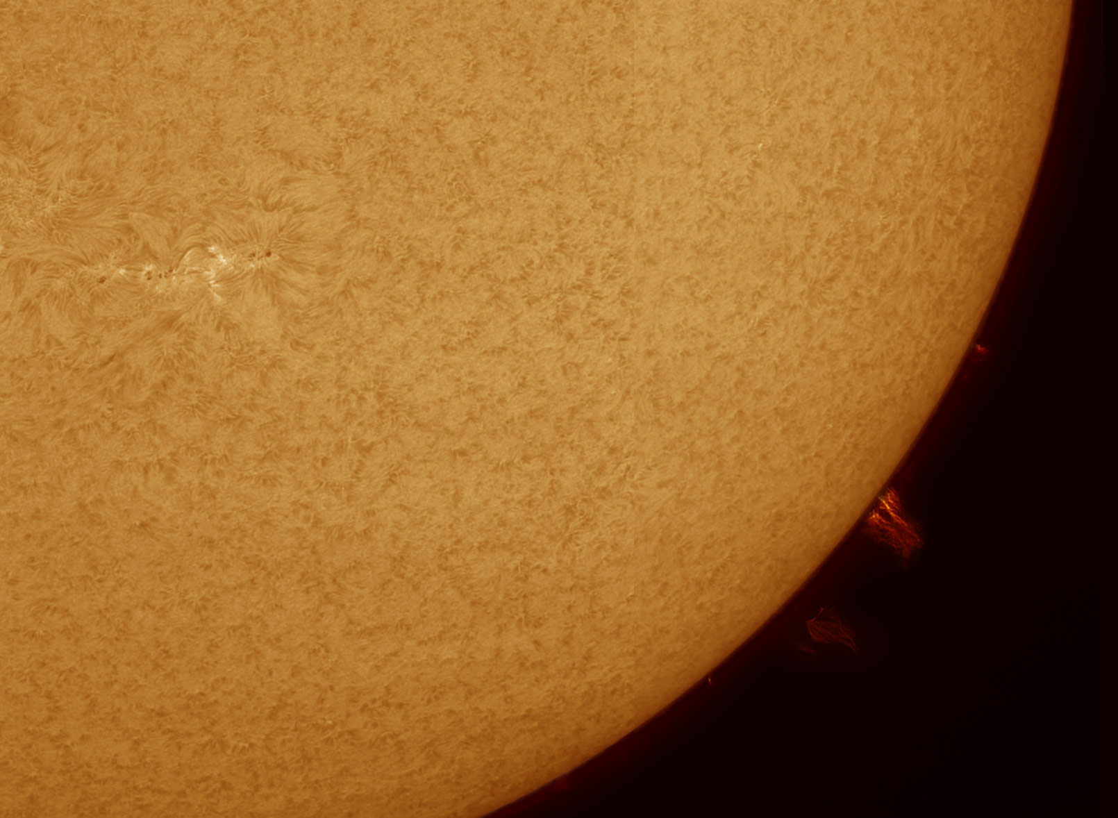 Gruppo di macchie solari NOA 1247 e alcune piccole protuberanze.