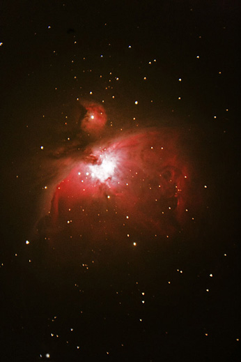 Nebulosa di Orine. ripresa con Canon EOS20Da al fuoco diretto del Meade LX200R con riduttore di focale f6,3 , montatura Vixen Atlux , posa non guidata di 183″ ;