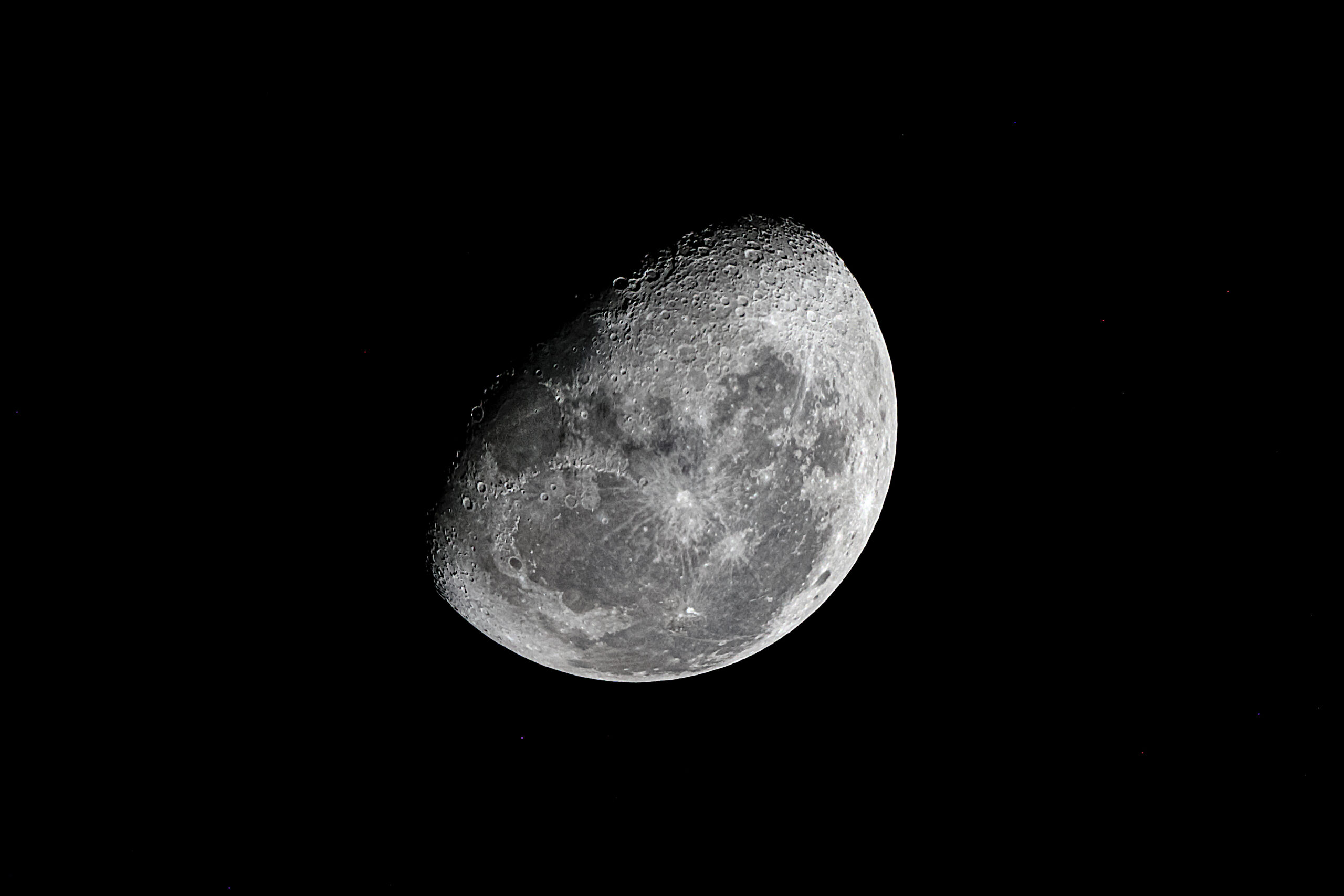 Scatto singolo da 1/6000 con iso 800 alla Luna in fase calante con canon 550d su skywatcher 200/1000