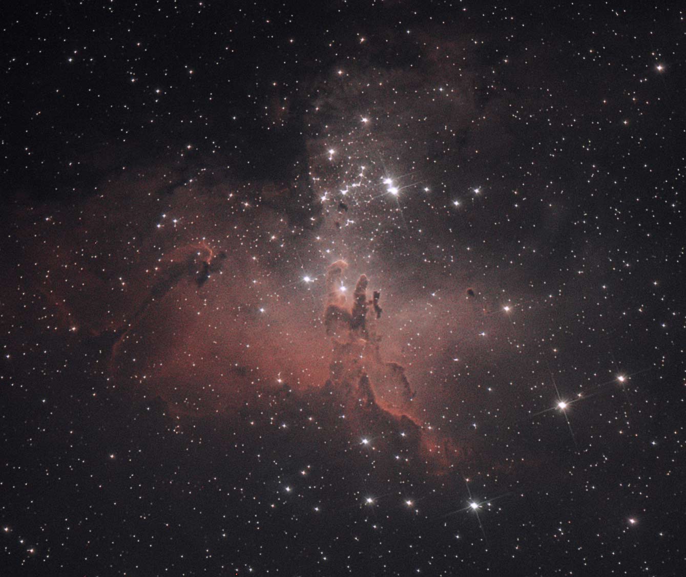 Nebulosa M16 nel dettaglio i pilastri della creazione somma di 40 scatti x 60 sec . acquisizione Asiair plus elaborazione photoshop cs. No filtri . 20 dark 25 flat