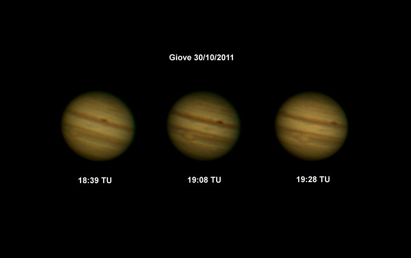 Tre immagini di Giove con la grande macchia rossa per vedere quanto veloce gira questo pianeta