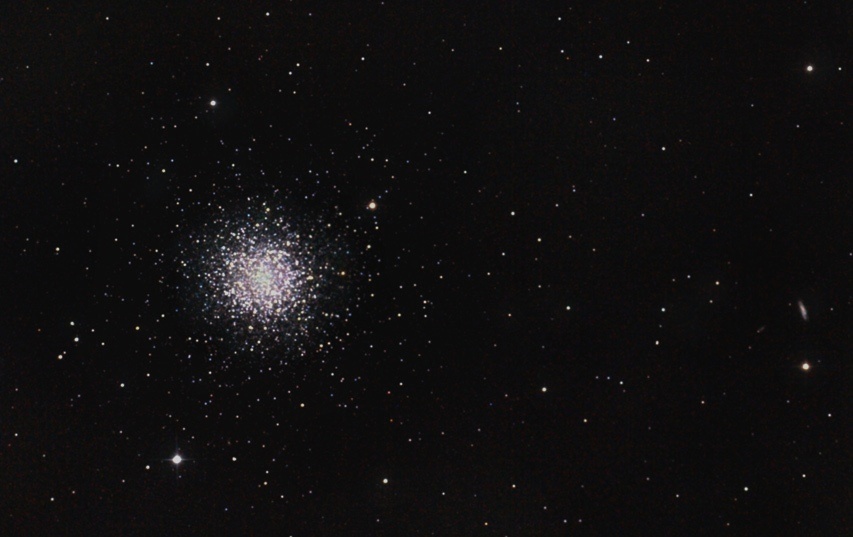 Famoso ammasso M3 e meno famosa galassia NGC 5263 di mag 13,4 e dimens. 1,6′ X 0,4′. Ho decentrato M3 per riprendere nello stesso campo NGC 5263 ed una galassia debole appena sulla sinistra di NGC5263.