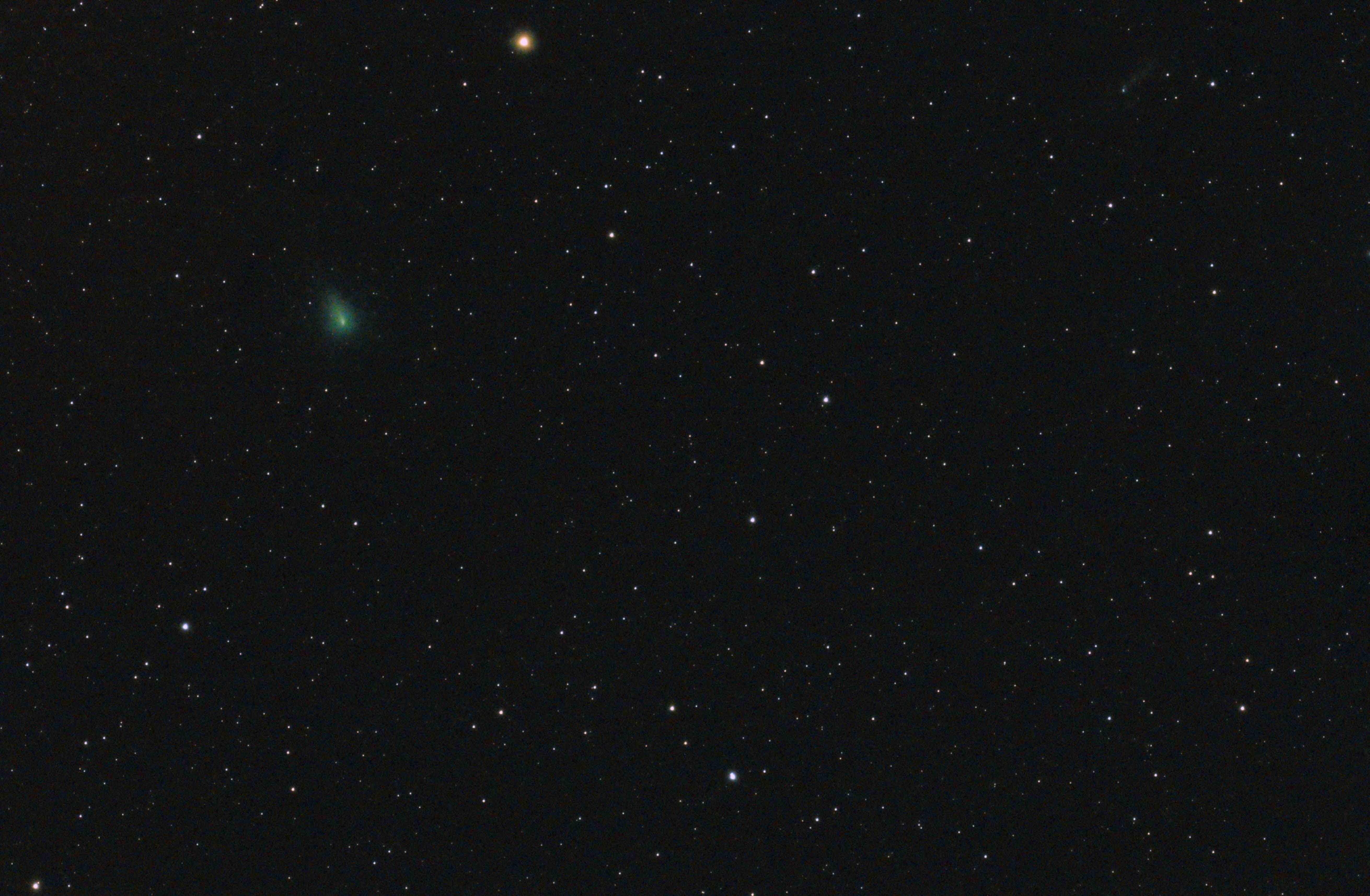 Prima esperienza su questo tipo di oggetti e appena 15 minuti di integrazione su questa cometa in una serata con pessimo seeing. Debolissima la galassia ngc 2366 in alto a destra. Telescopio TS65Q e camera Asi 183 MC pro, pose da 30 secondi senza guida. Un dark, un flat e postproduzione con pixinsight.