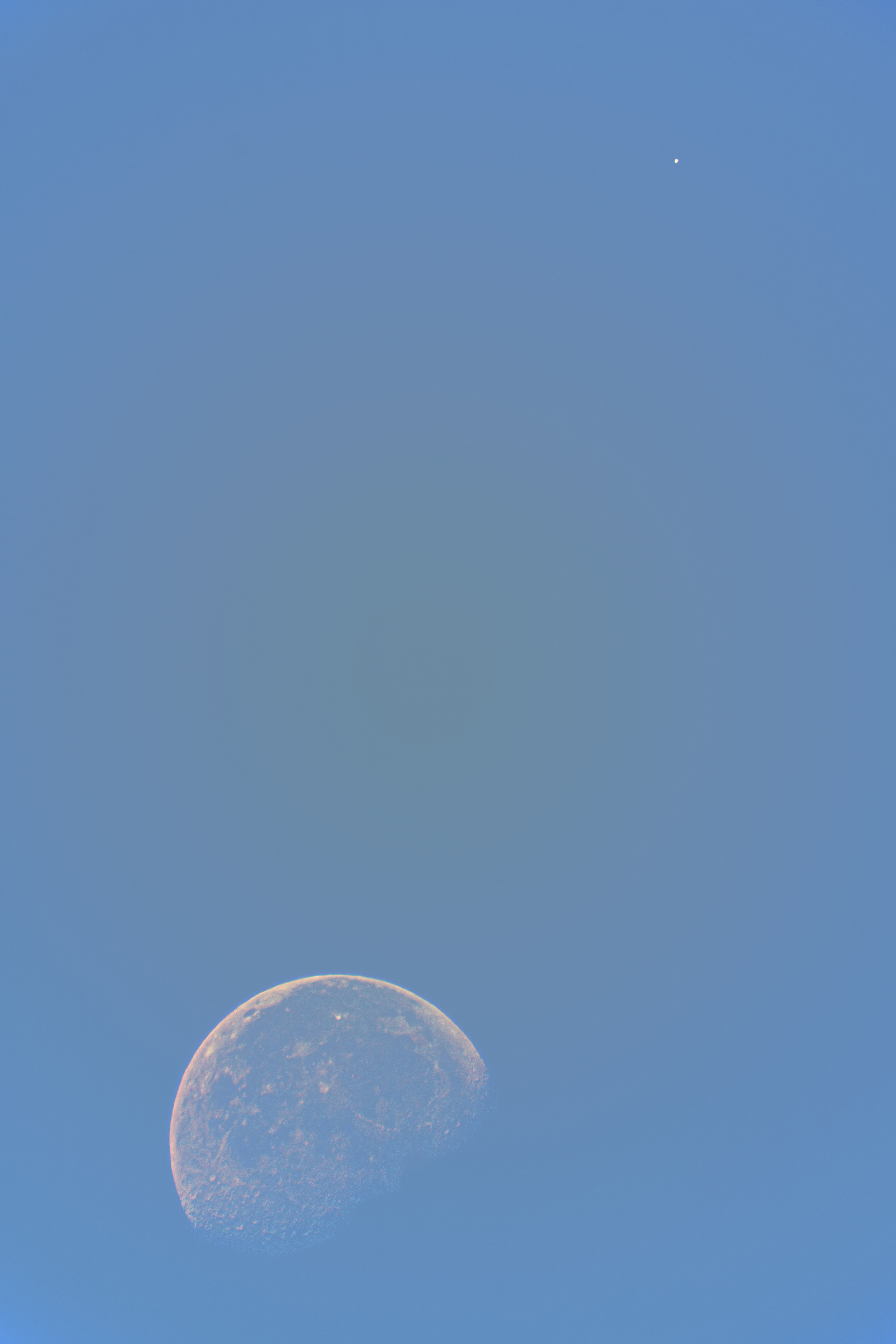 La congiunzione tra Luna e Marte ripresa di giorno il 9/8/2020 da Melegnano, MI utilizzando un cavalletto fisso.